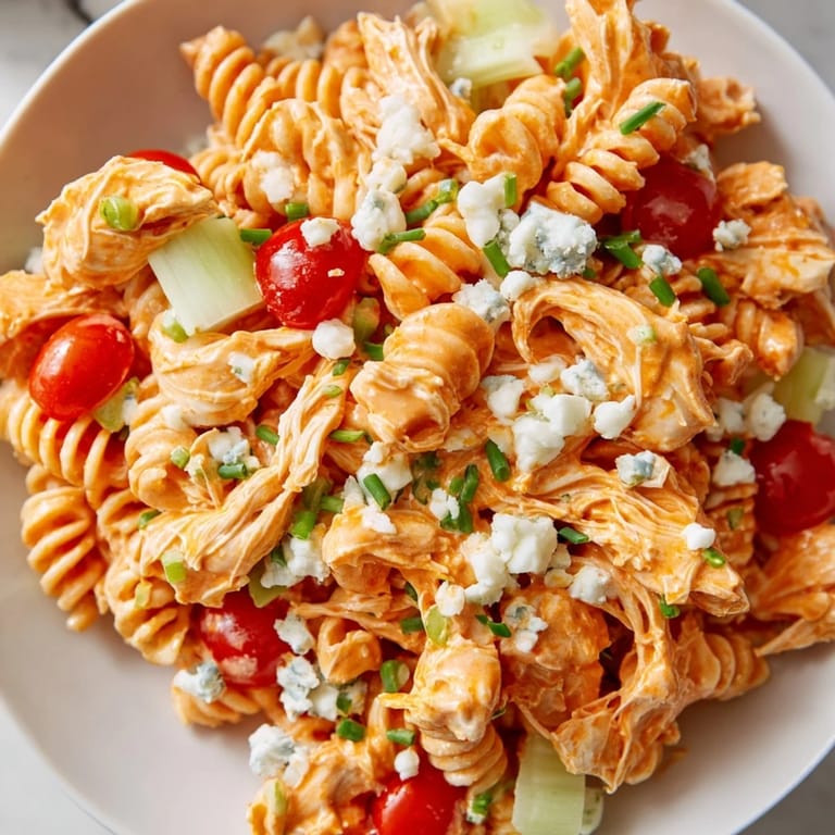 Save My neighbor knocked on my door with a cooler full of leftovers after her family reunion, insisting I try the buffalo chicken pasta salad before it disappeared. One forkful standing at my kitchen counter and I was frantically texting her for the recipe. The creamy ranch balanced the tangy heat so perfectly that I made my own batch that same evening, doubling the buffalo sauce because I like to live dangerously. Now it's my go-to whenever I need to feed a crowd without turning on the oven.