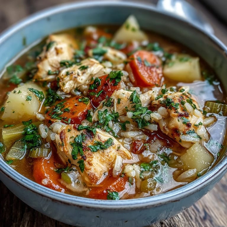 Save There's something about a pot of chicken and rice soup that stops everything else from mattering. My neighbor Sarah brought over a steaming bowl one gray afternoon when I was buried under work, and I remember sitting at my kitchen table, steam fogging my glasses, tasting something that felt less like dinner and more like a small act of kindness. That's when I understood the real magic of this soup—it's not fancy or complicated, but it carries weight because it actually nourishes you, body and mood together.