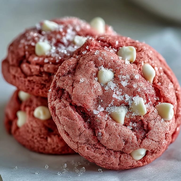 Save The kitchen smelled like butter and vanilla when I pulled that first tray out, but it was the color that stopped me cold. These cookies glowed pink under the oven light, almost too pretty to eat. I'd been experimenting with gel colors for weeks, trying to nail something vibrant without tasting artificial, and white chocolate chips turned out to be the perfect contrast. My neighbor peeked through the window and asked if I was baking for a baby shower. I wasn't, but by the end of the week, I had been asked to make three dozen for one.