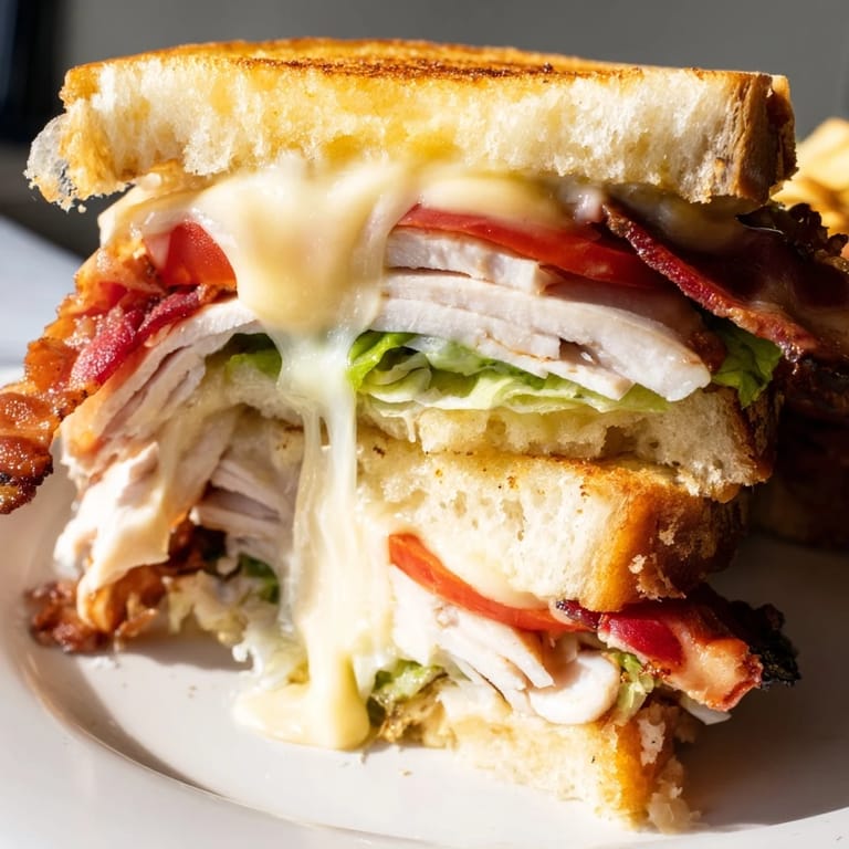 Save My skillet was too hot the first time I tried this, and the bread scorched before the cheese even thought about melting. I stood there scraping black crust into the sink, wondering why I thought I could improve a club sandwich. But the next morning, with the heat dialed back and a little patience, I watched that sourdough turn golden and glossy, the cheese bubbling at the edges, and I realized this wasn't about improvement—it was about warmth, about making something familiar feel like a hug. Now it's my go-to when I want comfort that doesn't require an hour in the kitchen.